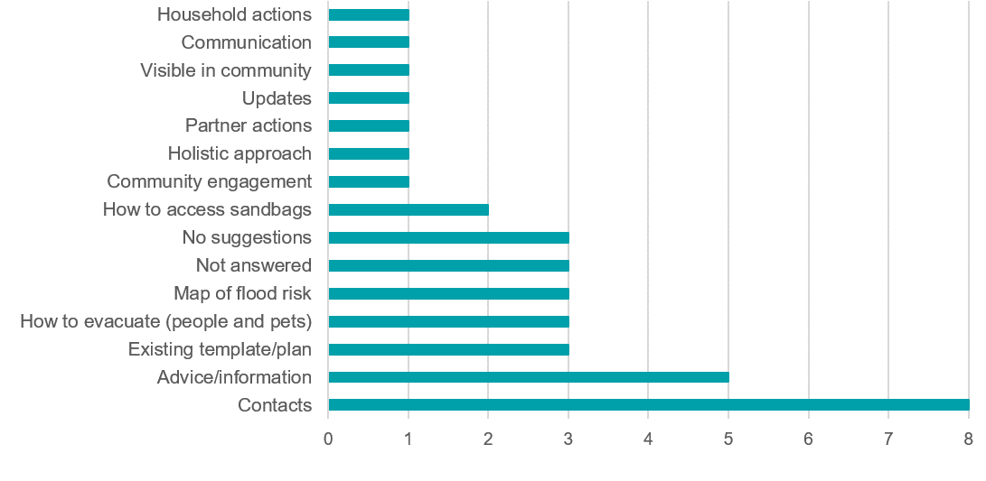 We asked what you would like to see on a community flood plan template and there were a range of suggestions. Here are the themes of the responses: