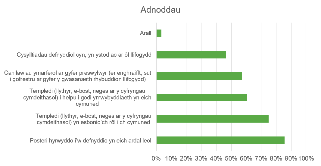 Cafwyd cymysgedd o ymatebion, gyda rhai grwpiau eisoes yn cynllunio ar gyfer argyfyngau ehangach, a hoffai eraill wneud hyn yn y dyfodol. Byddwn yn rhannu gwybodaeth a chyngor ar wneud hynny, gan gynnwys yr adnoddau a'r offer cydnerthu cymunedol sydd ar gael ar GOV.UK.