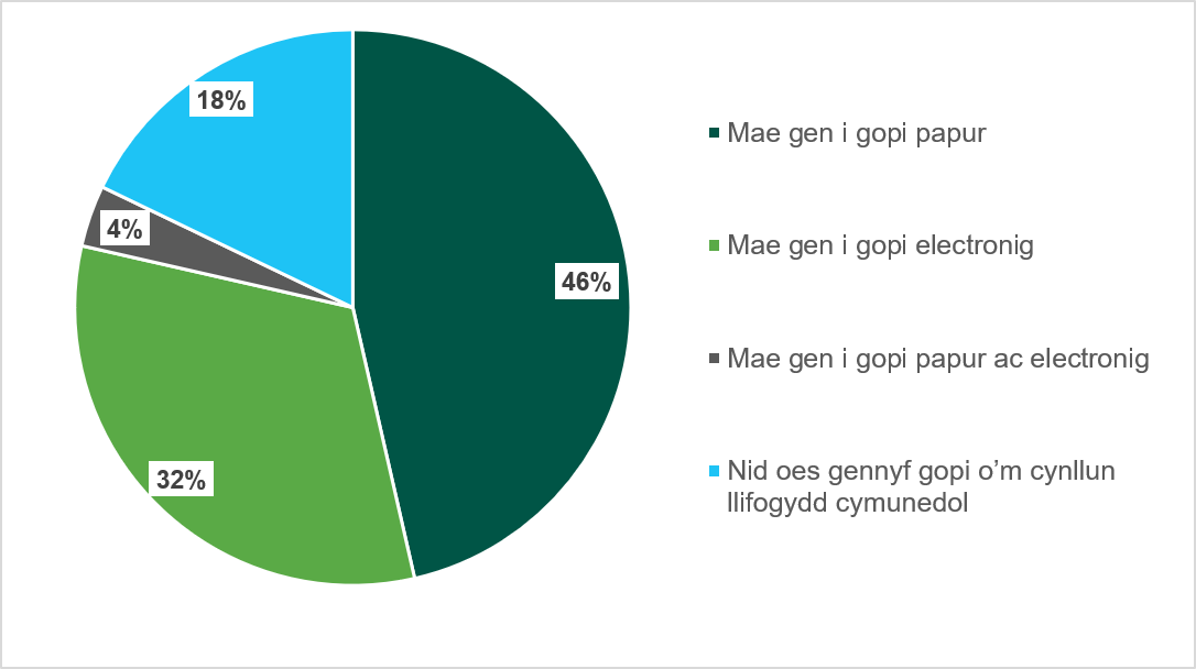 Gofynnwyd a oedd pobl yn cadw copi papur a/neu electronig o'u cynllun, a chafwyd cymysgedd o ymatebion: