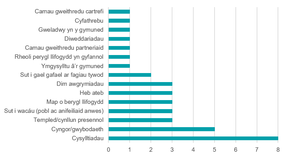Codwyd rhai pwyntiau pwysig eraill a meysydd cymorth posibl: