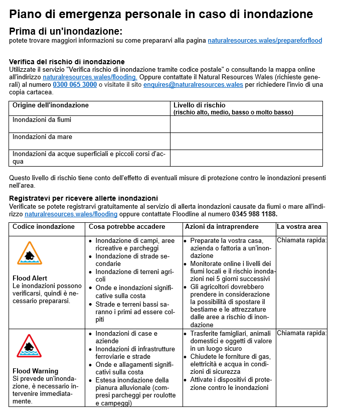 Create un piano di emergenza che includa le informazioni essenziali di cui potreste avere bisogno. Conservate il piano di emergenza in caso di inondazione in un raccoglitore impermeabile, facile da reperire in caso di necessità!