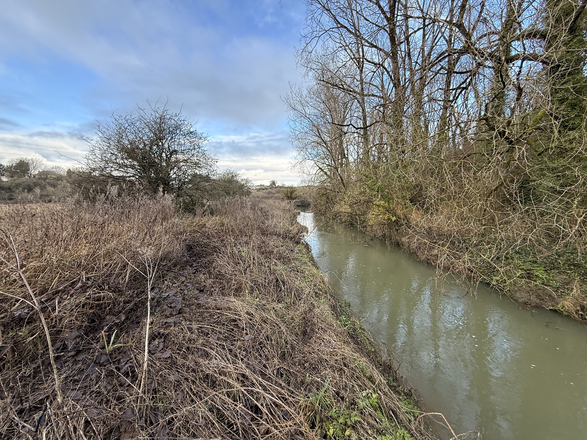 The river’s natural meanders were removed during channel realignment works in the 1950s, resulting in an artificially straight, uniform, and overly deep channel with minimal variation in form and habitat. Historical channel depressions are however still present in the fields of the valley, demonstrating that flows previously migrated across a larger area of the floodplain.